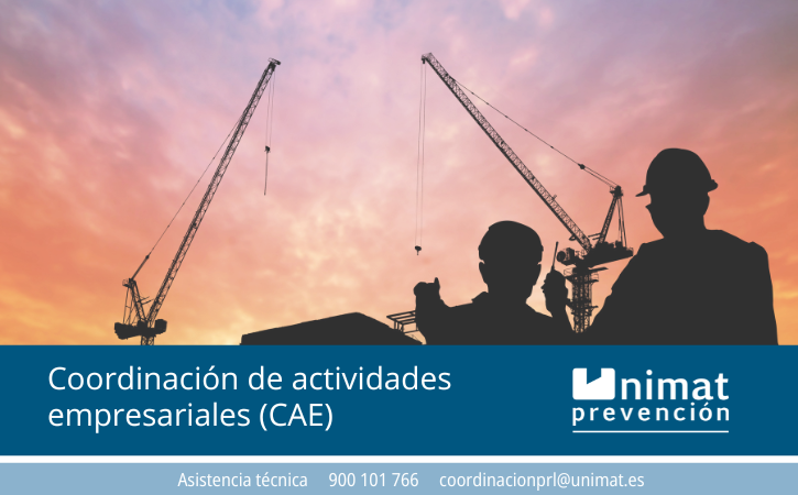 En UNIMAT PREVENCIÓN, del Grupo Avanta, ofrecemos un servicio de asesoramiento técnico personalizado para la CAE. Ayudamos a las empresas a controlar los riesgos concurrentes que se pueden llegar a generar en un centro de trabajo en el que desarrollen actividades personas trabajadoras de dos o más empresas.